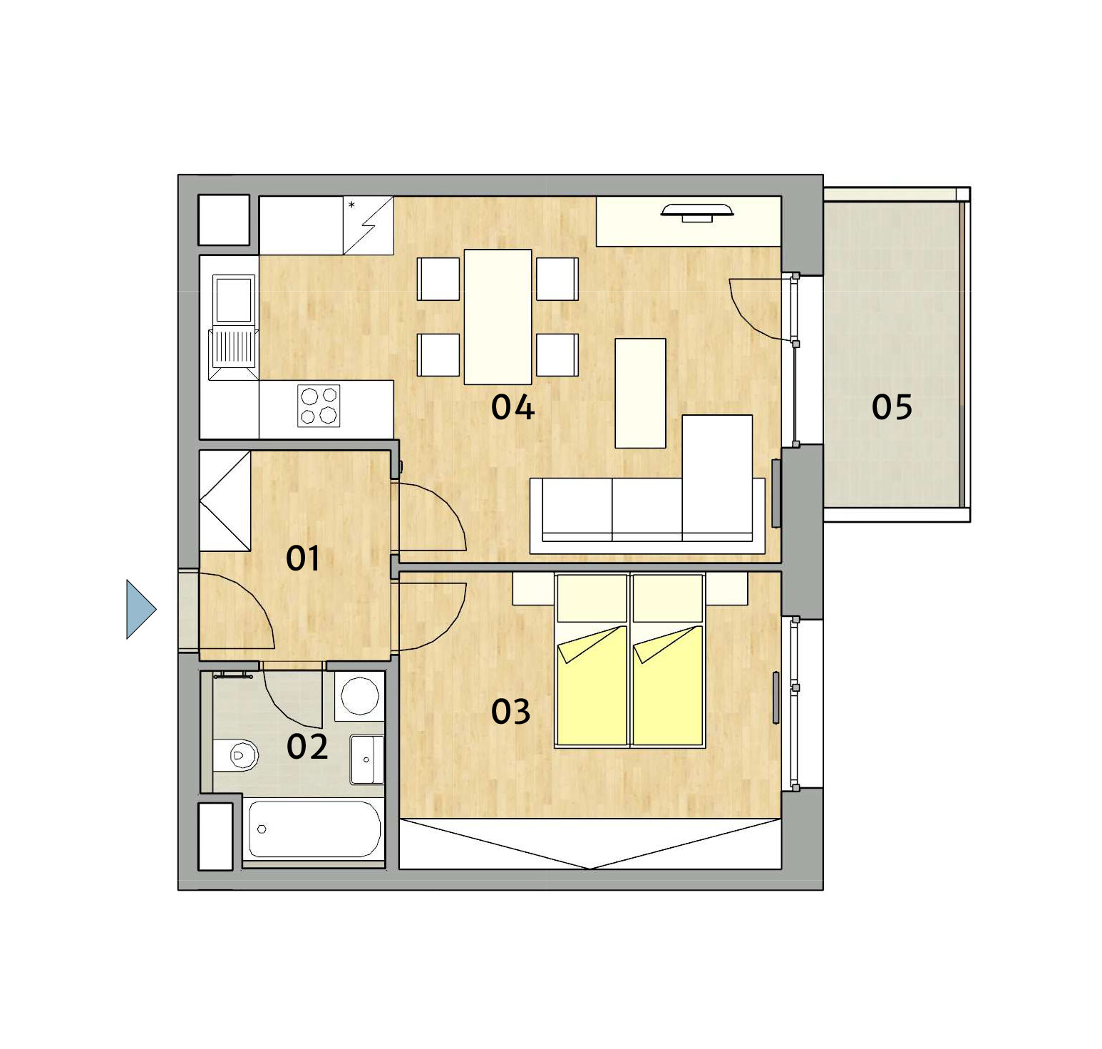 04 | Obývací pokoj + kuchyně | 26,6 m2 |